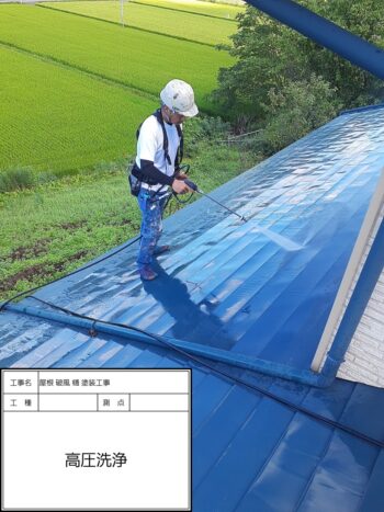 屋根ケレン作業〜高圧洗浄
