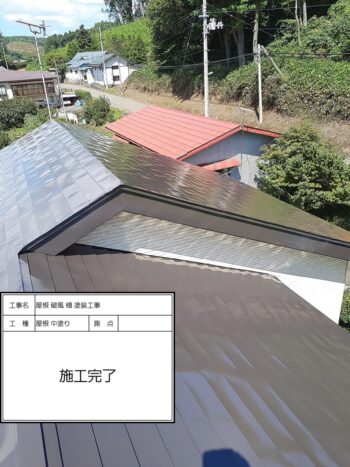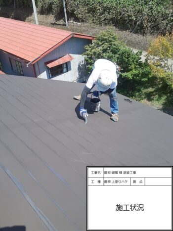 屋根 上塗りハケ施工状況〜施工完了