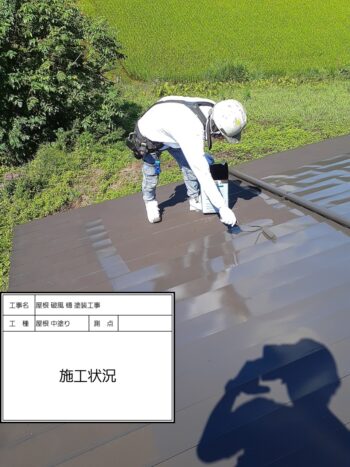 屋根 中塗り施工状況〜施工完了