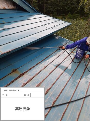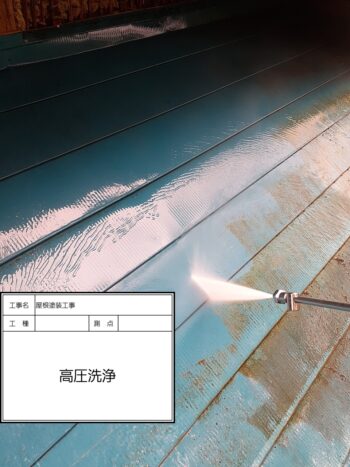 屋根ケレン作業〜高圧洗浄