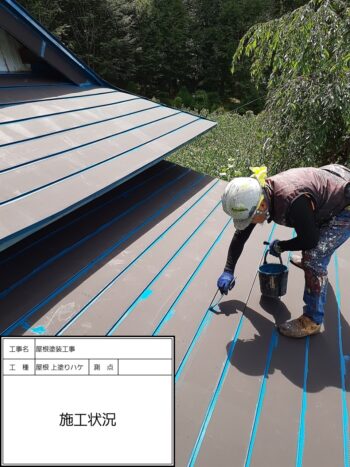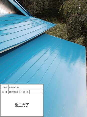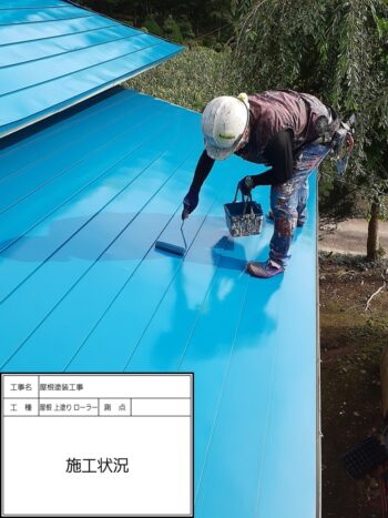屋根 上塗りハケ施工状況〜施工完了