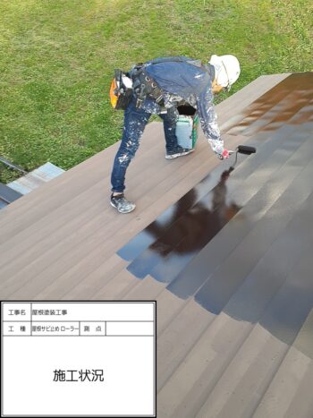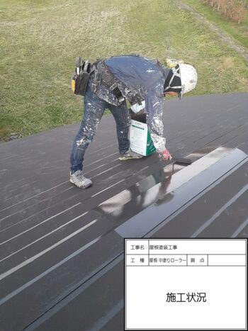 屋根 中塗りローラー施工状況