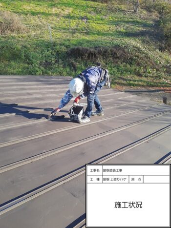 屋根 上塗りハケ施工状況