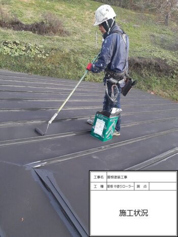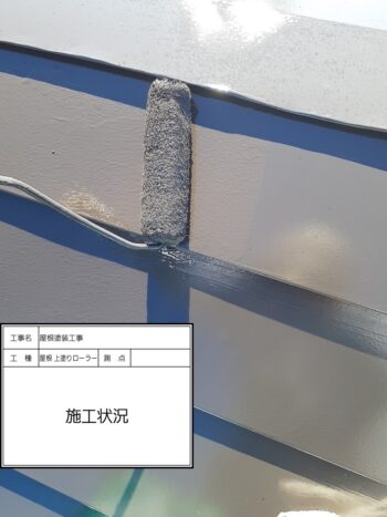 屋根 上塗りローラー施工状況