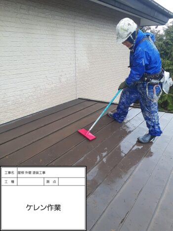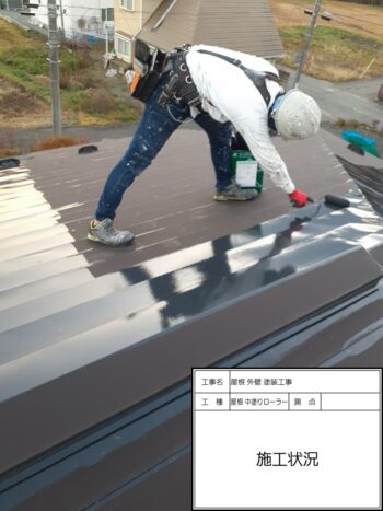 屋根 上塗りハケ 施工状況