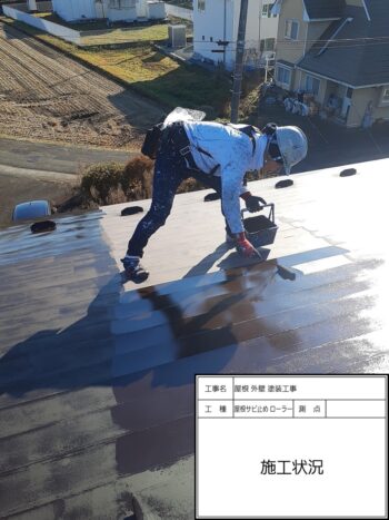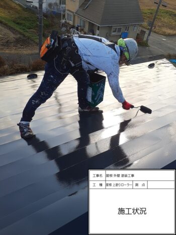 屋根 中塗りローラー 施工状況