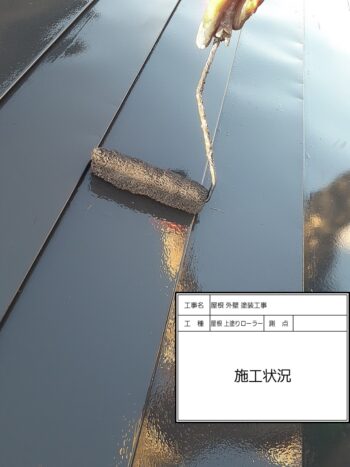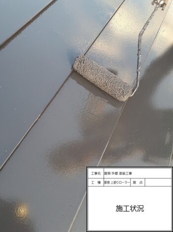 屋根 上塗りローラー 施工状況