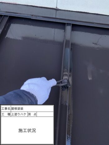 屋根 上塗りハケ施工状況