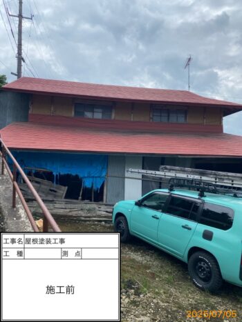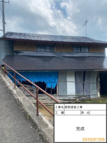 岩手町にて、屋根塗装工事を施工させていただきました。主屋の勾配が非常に急であり、屋根足場を組んでの塗装工事を行いました✨️